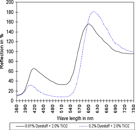 DE ≤ 1.0 (tested in GP-PS with 2.0% TiO2 and 0.1% dyestuff; CIELab; DIN 6174) |